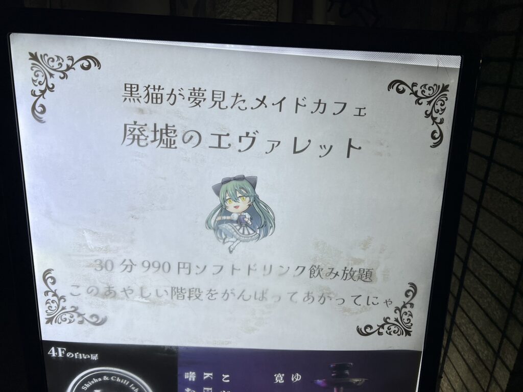 行ったのは黒猫が夢見たメイドカフェ・廃墟のエヴァレット栄店だ。